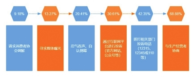 本次调查显示,消费者在遇到食品安全问题后选择与生产经营者协商退换或赔偿解决的占比为68.88%、选择拨打相关部门投诉电话(12315、12345或110等)的消费者占比为42.35%、选择通过互联网平台进行投诉(官方网站、公众号等)的消费者占比为30.61%、选择忍气吞声、自认倒霉的消费者占比为20.41%。建议广大消费者应当在正规可靠渠道购买所需食品并保存相应购物凭证,如果发现食品存在质量问题,一定要采取积极、主动的措施维护自身权益。此外,超七成消费者认为只有加大对失信企业或个人的处罚力度、严格执法、加大监管力度,才能提高消费信心。
