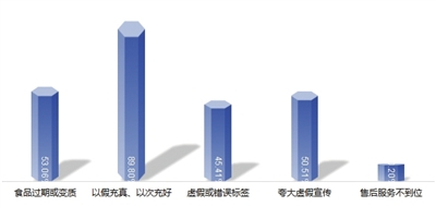 调查中发现,79.46%的消费者表示对食品安全问题“遇到过但很少”,另有14.96%的消费者则表示经常遇到,仅有5.58%的消费者表示还未遇到过此类问题。在消费者遇到的食品安全问题中,以假充真、以次充好等质量问题最多(89.80%)、其次为购买的食品过期或变质(53.06%)、夸大虚假宣传(50.51%)及虚假或错误标签(45.41%)等。可见部分餐饮企业食品质量不达标问题多发,食品监管部门应加大监督检查力度,对不法经营者给予严惩。
