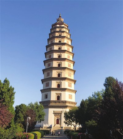 踏着东坡踏过的石阶,触摸着东坡触摸过的墙壁,辨识着东坡辨识过的碑刻,不觉间已登临七楼,目前能登上的最高处。窗外,定州大地,古韵新风。每上一层,古城画卷就往远处铺展一些。伴着秋日明媚的阳光,这座千年古城更加妖娆多姿,充满活力的宋韵文化依旧浸润着当代定州人的生活。