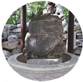 也是在定州博物馆,赶上临展“又见东坡”,得知定州还有一东坡遗物——雪浪石。多方打听,得知此石正在定州城内一医院的雪浪亭里等着我。费了一番周折,经人指点,方与之相见。此处古树众多,看样子很少有人来,静得很,只有脚下的窸窸窣窣和被隔离很远的车马喧嚣。细观此石,黑质白脉,中含水纹,若雪浪翻飞、石间奔流。苏东坡偶得此石,如获至宝,用汉白玉石琢芙蓉盆盛放,命名其室为“雪浪斋”,作《雪浪石盆铭》刻于芙蓉盆沿。