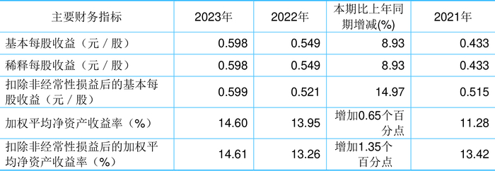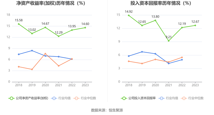 数据显示,2023年公司加权平均净资产收益率为14.60%,较上年同期增长0.65个百分点;公司2023年投入资本回报率为12.67%,较上年同期增长0.48个百分点。