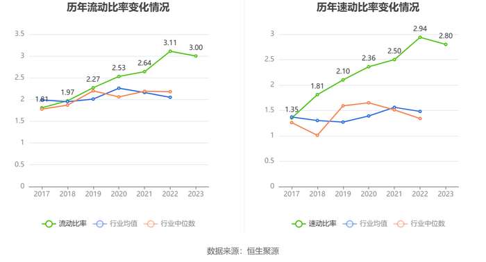2023年,公司流动比率为3.00,速动比率为2.80。