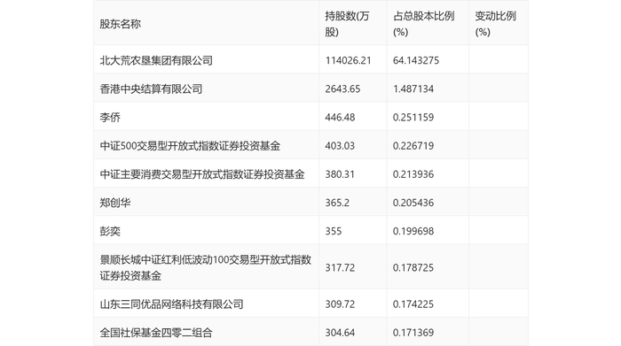 年报显示,2023年年末公司十大流通股东中,新进股东为景顺长城中证红利低波动100交易型开放式指数证券投资基金、山东三同优品网络科技有限公司、全国社保基金四零二组合,取代了三季度末的张晓夏、富国中证农业主题交易型开放式指数证券投资基金、富国文体健康股票型证券投资基金。在具体持股比例上,李侨、彭奕持股有所上升,香港中央结算有限公司、中证500交易型开放式指数证券投资基金、中证主要消费交易型开放式指数证券投资基金持股有所下降。