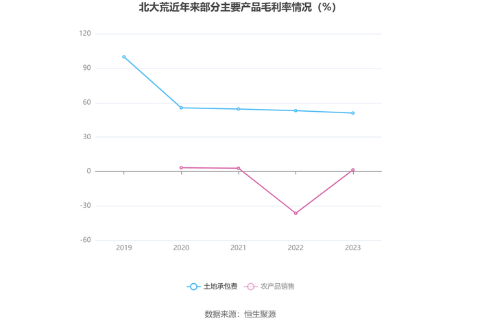 分产品看,土地承包费、农产品销售2023年毛利率分别为51.01%、1.51%。