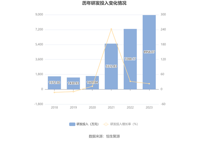 2023年全年,公司研发投入金额为8956.07万元,同比增长22.88%;研发投入占营业收入比例为1.78%,相比上年同期上升0.07个百分点。此外,公司全年研发投入资本化率为0。