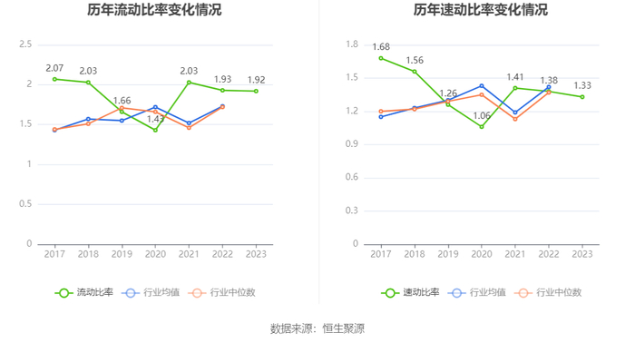 2023年,公司流动比率为1.92,速动比率为1.33。