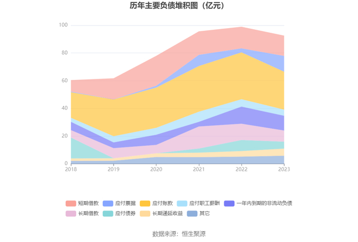 负债重大变化方面,截至2023年年末,公司应付票据较上年末增加292.62%,占公司总资产比重上升3.41个百分点;应付账款较上年末减少19.03%,占公司总资产比重下降2.46个百分点;长期借款较上年末减少31.44%,占公司总资产比重下降1.43个百分点,主要系长期借款转一年内到期的非流动负债;应付债券较上年末减少37.50%,占公司总资产比重下降1.18个百分点,主要系本期应付债券转一年内到期的非流动负债。