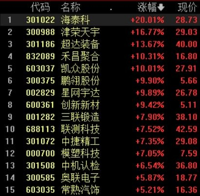 3月29日,小米汽车概念股开盘大涨,截至发稿,海泰科20%涨停,凯众股份涨停,津荣天宇、超达装备等涨超10%,鹏翎股份、星宇网达涨超9%。