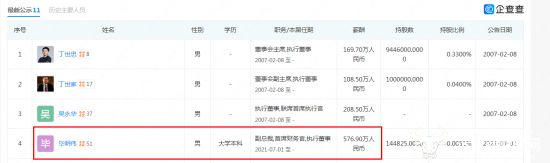 企查查显示,毕明伟去年的年薪高达576.90万元,比董事长丁世忠高407.2万元。
