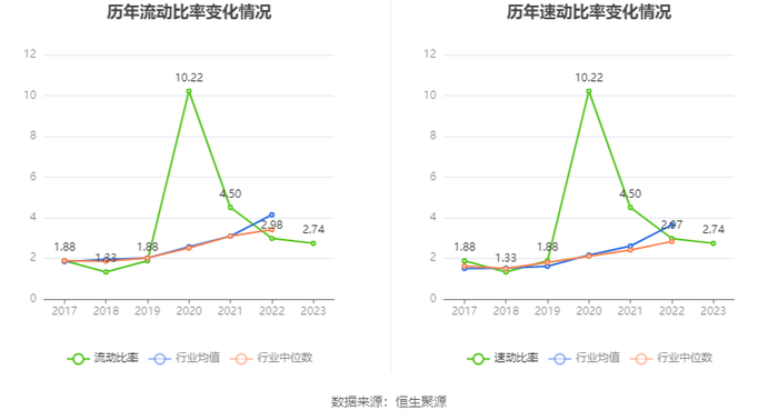 2023年,公司流动比率为2.74,速动比率为2.74。