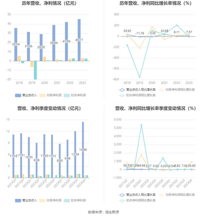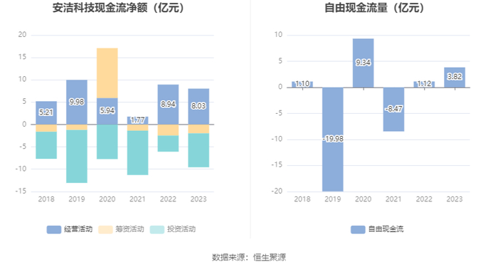 进一步统计发现,2023年公司自由现金流为3.82亿元,相比上年同期增长241.00%。