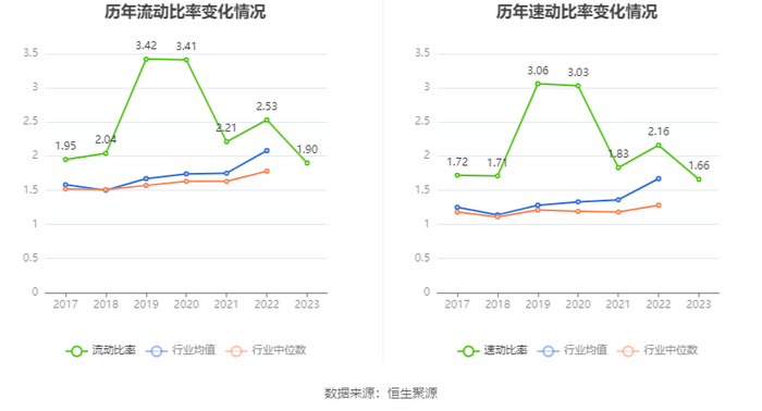 2023年,公司流动比率为1.90,速动比率为1.66。