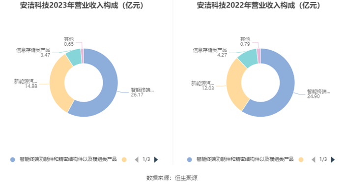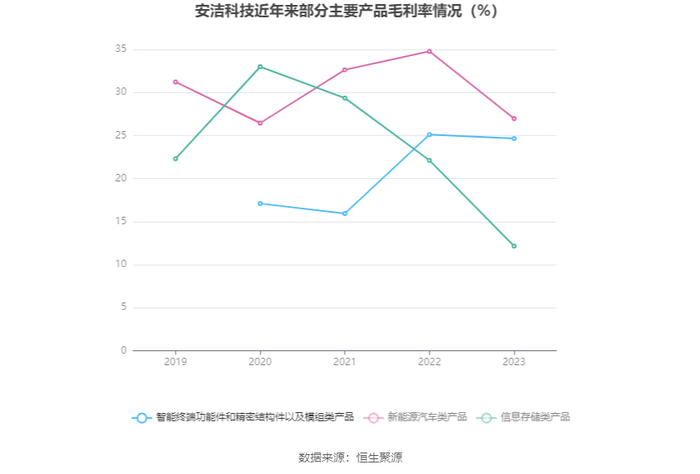 分产品看,智能终端功能件和精密结构件以及模组类产品、新能源汽车类产品、信息存储类产品2023年毛利率分别为24.65%、26.96%、12.15%。