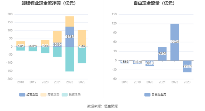 进一步统计发现,2023年公司自由现金流为-38.10亿元,上年同期为120.03亿元。
