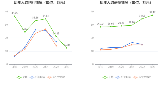 截至2023年末,公司员工总数为10651人,人均创收473.73万元,人均创利12.50万元,人均薪酬37.47万元,较上年同期分别变化14.26%、-41.28%、8.22%。