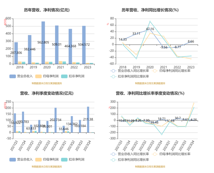 值得注意的是,近两年公司归母净利润、扣非净利润、毛利率、净利率、ROE均出现不同程度的下滑。其中,ROE从2021年的11.55%下降至2023年的3.45%。