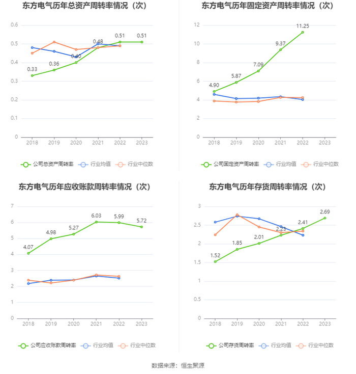 营运能力方面,2023年,公司公司总资产周转率为0.51次,上年同期为0.51次(2022年行业平均值为0.49次,公司位居同行业14/30);公司应收账款周转率、存货周转率分别为5.72次、2.69次。