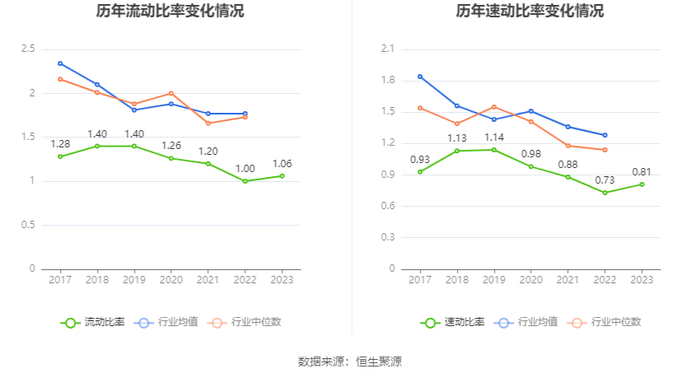 2023年,公司流动比率为1.06,速动比率为0.81。