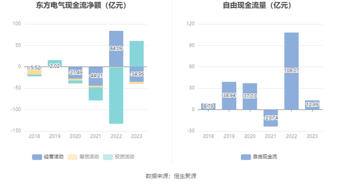 进一步统计发现,2023年公司自由现金流为12.99亿元,相比上年同期下降87.98%。