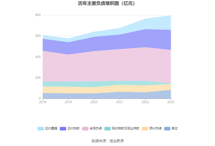 负债重大变化方面,截至2023年年末,公司应付票据较上年末增加38.55%,占公司总资产比重上升2.78个百分点;吸收存款及同业存款较上年末减少86.51%,占公司总资产比重下降3.32个百分点;应付账款较上年末增加11.25%,占公司总资产比重上升0.89个百分点;其他流动负债较上年末增加602.50%,占公司总资产比重上升1.45个百分点。