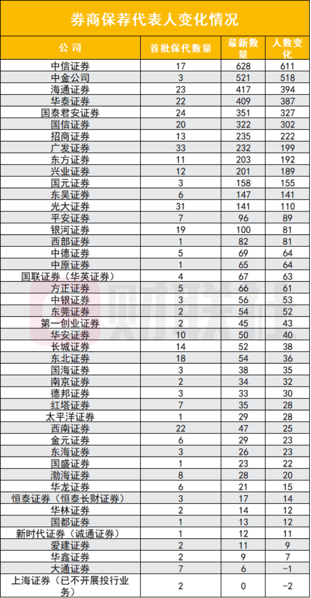 变化二:首批保代来自81家券商,33家主体已变化