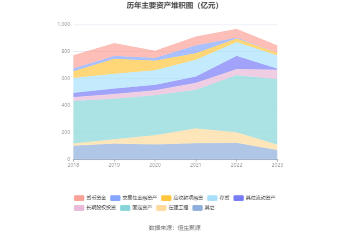 资产重大变化方面,截至2023年年末,公司固定资产较上年末增加14.41%,占公司总资产比重上升13.63个百分点;其他流动资产较上年末减少93.01%,占公司总资产比重下降9.27个百分点;长期股权投资较上年末增加58.31%,占公司总资产比重上升3.74个百分点;在建工程较上年末减少48.32%,占公司总资产比重下降3.27个百分点。