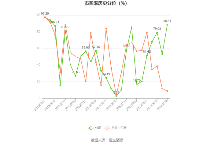 市盈率为负时,不显示当期分位数,会导致折线图中断。
