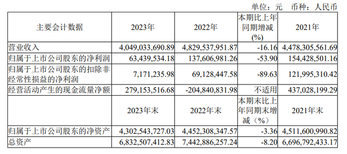 2023年,妙可蓝多实现营业收入40.49亿元,同比减少16.16%;实现归母净利润0.63亿元,同比下降53.90%