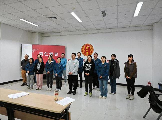 活动当天,从首都北京到河北玉田,从工业厂房到种植基地,从零售门店到车间班组,同仁堂科技公司全体干部职工以各种形式唱堂歌、诵堂赋,昂扬激越的歌、赋接续传唱,传递奋发有为的“科技”力量。