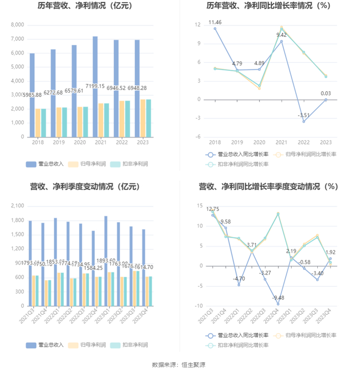 农业银行:2023年净利2693.56亿元 同比增长3.91% 拟10派2.309元