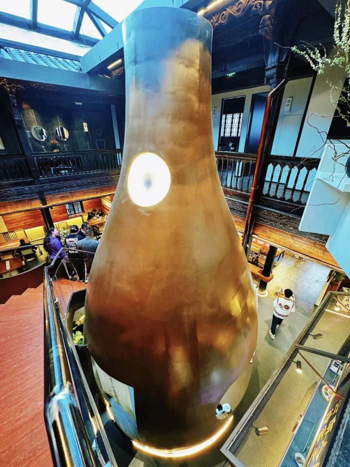 这里还有一个备受瞩目的特色之处,吸引了很多人特意来打卡——那就是餐厅中央的“炼丹炉搭配旋转楼梯”。其别具一格的设计与复古风格的结合,使得这个地方成为了拍照的绝佳之处。