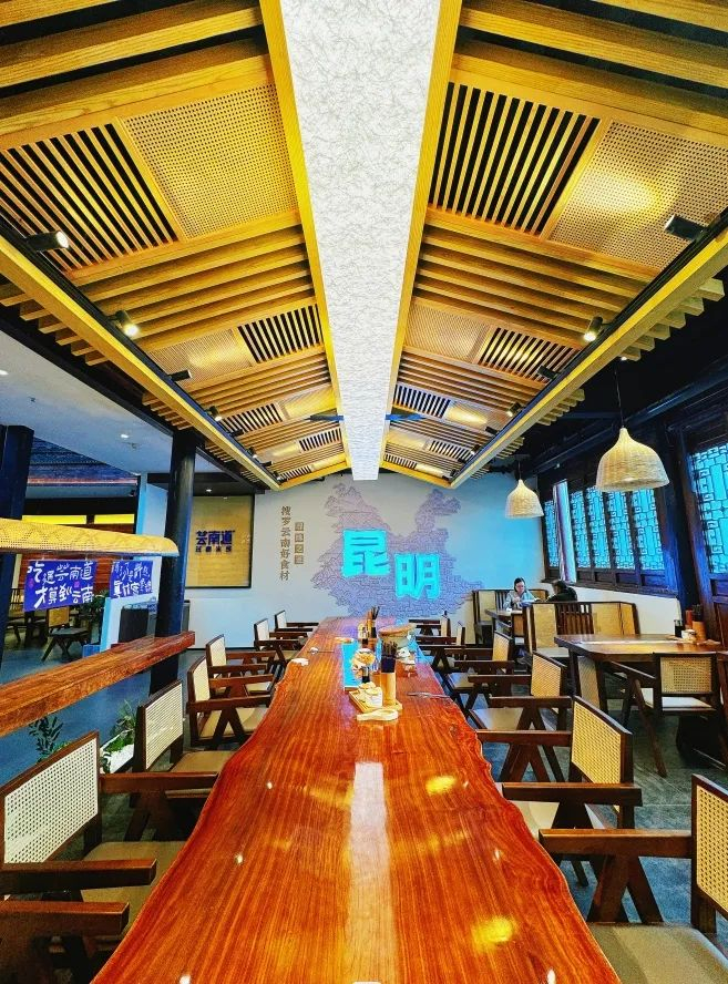 芸南道过桥米线地处昆明市中心的钱王街,它的装修风格,巧妙地融合了古典与现代元素。木质的桌椅、古朴的窗棂、古色古香的挂画……每一处细节都彰显着店家的匠心独运。