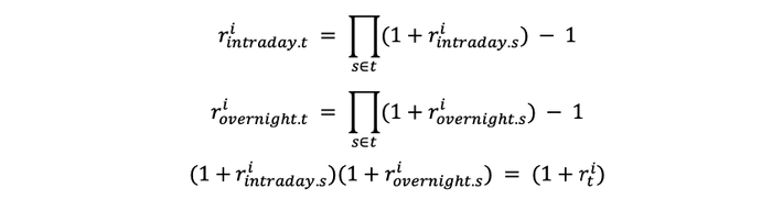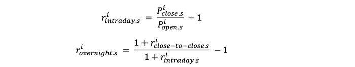 为了将收益分解为隔夜和日内组成部分,研究采用了交易日第一个半小时(上午9:30至10:00)的成交量加权平均价格(VWAP),并确保开盘价格的稳健性。