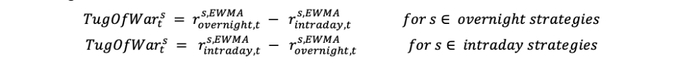 3.揭示了投资者群体之间在特定策略方向上的拉锯战,较大的隔夜与日内收益差异反映了这种拉锯战的程度。TugOfWar指标可作为预测时间变化的异常收益的通用指标;