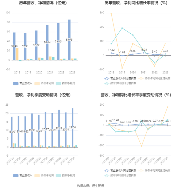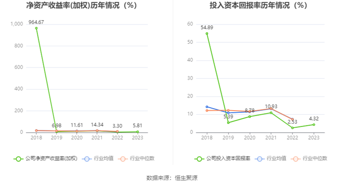 数据显示,2023年公司加权平均净资产收益率为5.81%,较上年同期增长2.51个百分点;公司2023年投入资本回报率为4.32%,较上年同期增长1.79个百分点。