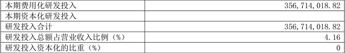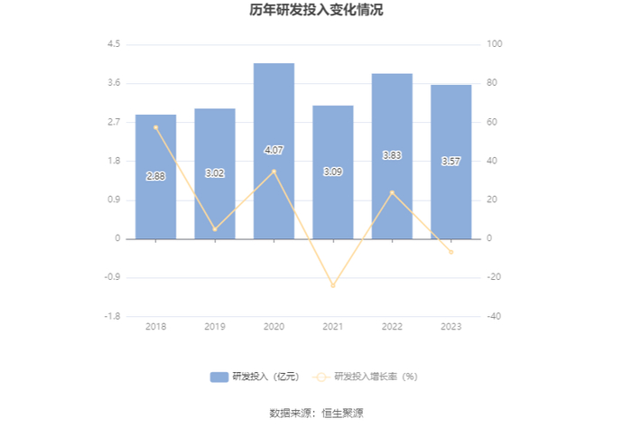 2023年全年,公司研发投入金额为3.57亿元,同比下降6.77%;研发投入占营业收入比例为4.16%,相比上年同期下降0.74个百分点。此外,公司全年研发投入资本化率为0。