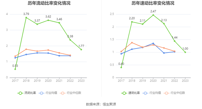 2023年,公司流动比率为1.77,速动比率为1.00。