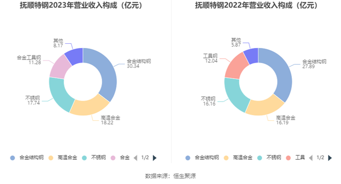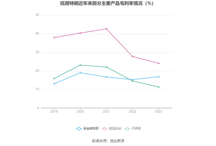 分产品看,合金结构钢、高温合金、不锈钢2023年毛利率分别为16.88%、24.09%、11.30%。