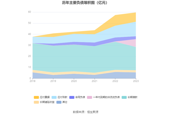 负债重大变化方面,截至2023年年末,公司一年内到期的非流动负债较上年末增加2038.90%,占公司总资产比重上升5.44个百分点;长期借款较上年末减少17.30%,占公司总资产比重下降4.60个百分点;应付账款较上年末增加23.45%,占公司总资产比重上升1.58个百分点;应付票据较上年末减少12.51%,占公司总资产比重下降1.37个百分点。