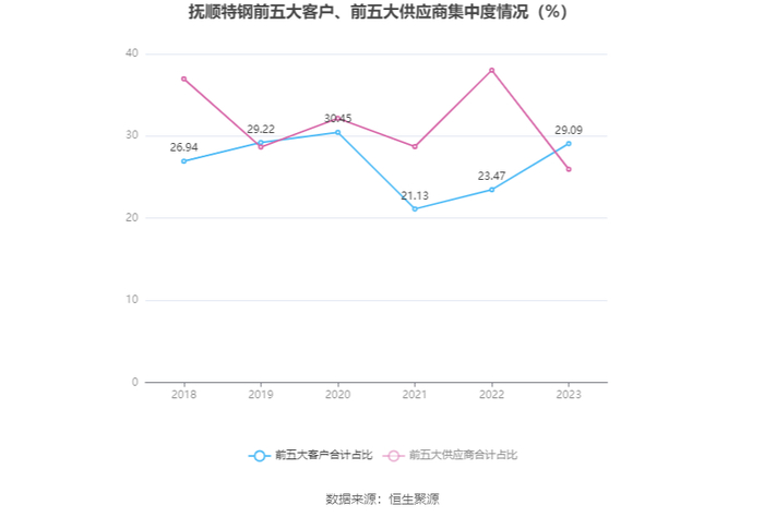 报告期内,公司前五大客户合计销售金额27.25亿元,占总销售金额比例为29.09%,公司前五名供应商合计采购金额14.62亿元,占年度采购总额比例为25.95%。