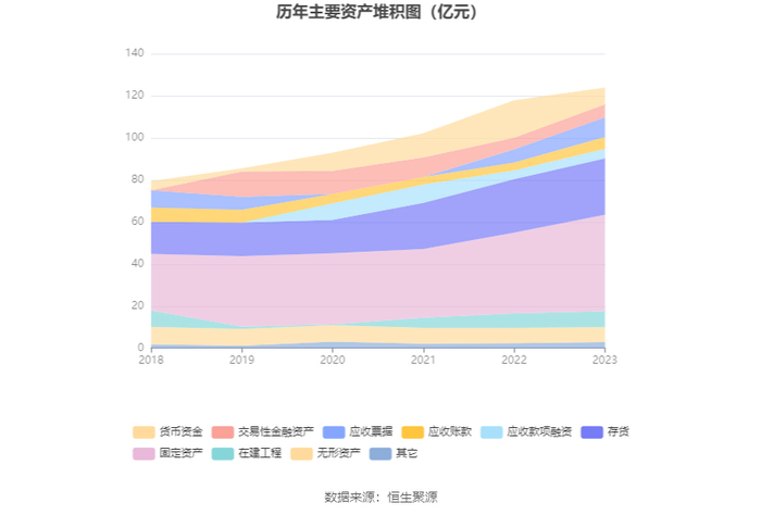 资产重大变化方面,截至2023年年末,公司货币资金较上年末减少55.43%,占公司总资产比重下降8.71个百分点;固定资产较上年末增加19.42%,占公司总资产比重上升4.43个百分点;应收票据较上年末增加49.02%,占公司总资产比重上升2.22个百分点;应收账款较上年末增加50.34%,占公司总资产比重上升1.37个百分点。