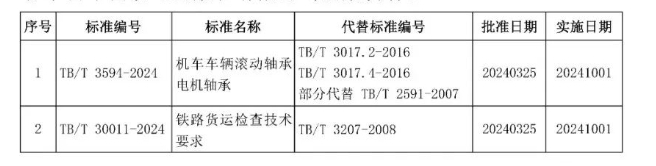 此次发布的2项标准为机车车辆专业的装备技术标准和客货运输专业的运输服务标准,2项均为修订标准,自2024年10月1日起实施。机车车辆电机轴承是影响铁路运营安全的关键设备,铁路货运检查是保障铁路货物运输安全的重要内容,2项标准为铁路产品设计、制造、检验、应用,以及铁路货物运输提供了技术依据,对保障铁路运营安全、提高产品质量具有重要意义。