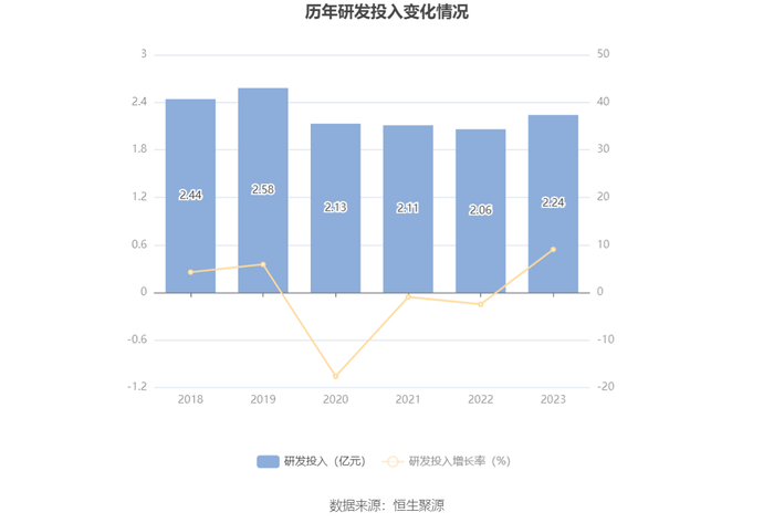 2023年全年,公司研发投入金额为2.24亿元,同比增长9.05%;研发投入占营业收入比例为3.67%,相比上年同期上升0.18个百分点。此外,公司全年研发投入资本化率为6.26%。