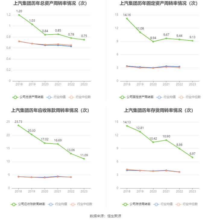 数据统计显示,上汽集团近三年营业总收入复合增长率为0.12%,在汽车行业已披露2023年数据的56家公司中排名第43。近三年净利润复合年增长率为-11.62%,排名44/56。