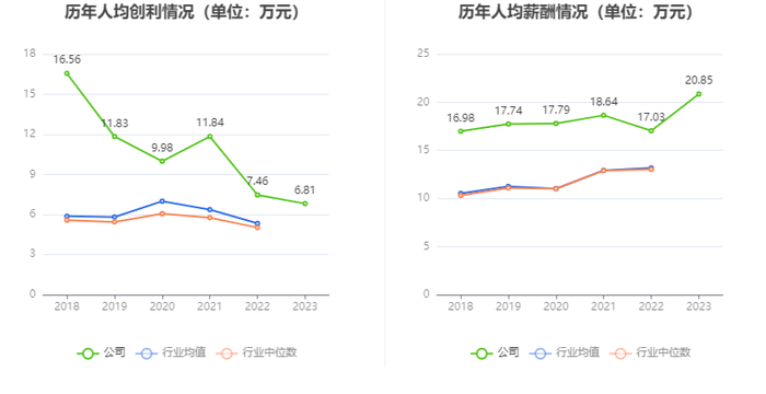 截至2023年末,公司员工总数为207001人,人均创收359.76万元,人均创利6.81万元,人均薪酬20.85万元,较上年同期分别变化4.44%、-8.68%、22.42%。