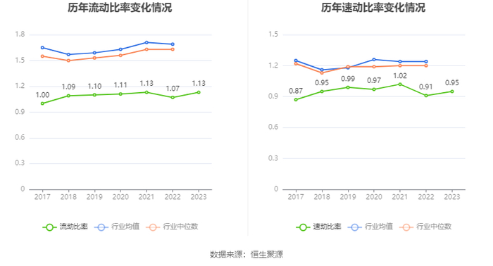 2023年,公司流动比率为1.13,速动比率为0.95。