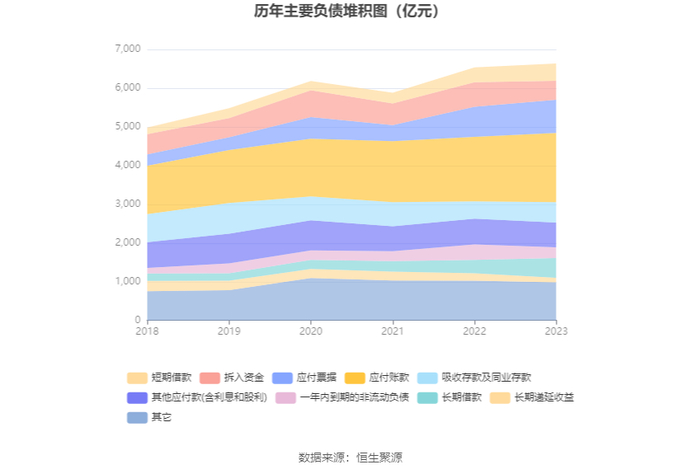 负债重大变化方面,截至2023年年末,公司长期借款较上年末增加48.91%,占公司总资产比重上升1.62个百分点;拆入资金较上年末减少23.42%,占公司总资产比重下降1.58个百分点;一年内到期的非流动负债较上年末减少30.80%,占公司总资产比重下降1.27个百分点;应付账款较上年末增加7.22%,占公司总资产比重上升0.92个百分点。