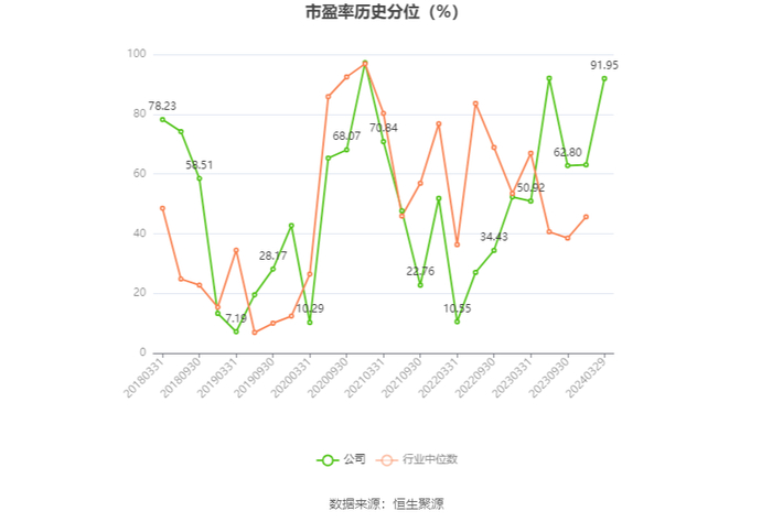 市盈率为负时,不显示当期分位数,会导致折线图中断。