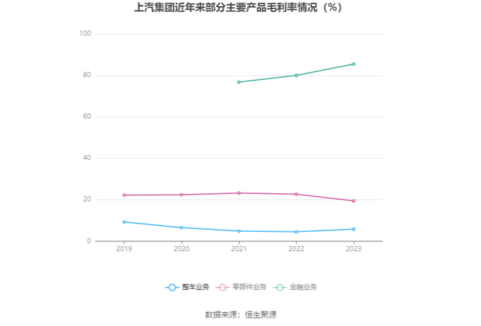分产品看,整车业务、零部件业务、金融业务2023年毛利率分别为5.79%、19.46%、85.47%。