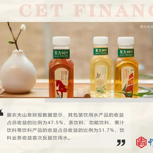“饮料业务收益之所以超过饮用水,首先是农夫山泉茶饮料本身口感好,迎合了年轻人的消费习惯。其次是越来越多的人们更加追求健康饮品,茶饮料被认为更有利于健康,因此茶饮料市场放大。”宋向清向中国经济时报·中时财经分析道。